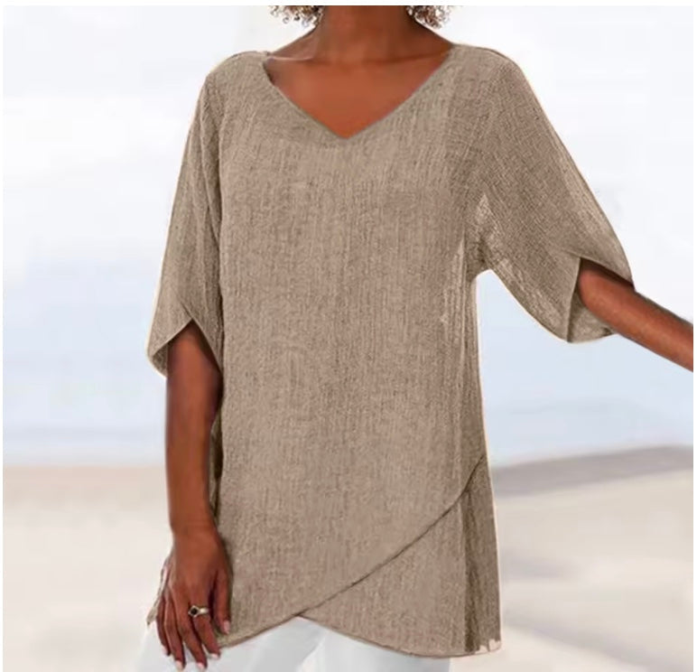 Sara | Luźna Tunika z Asymetrycznym Dołem i Dekoltem V