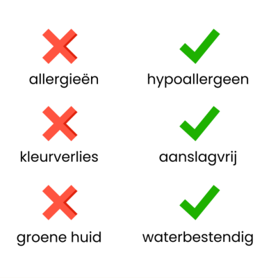 - Odporna na wodę, pot i ciepło. (Brak odbarwień, brak osadu).