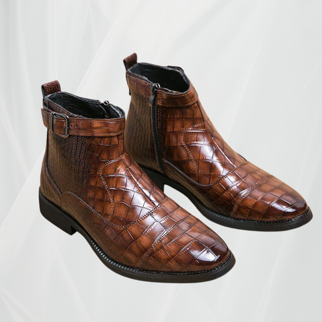 Objevte kožené boty Iulian s přezkou, dokonalou kombinaci luxusního řemesla a vytříbeného designu. Navrženy tak, aby vydržely a vynikly, jsou ideální volbou pro muže, kteří hledají nádech elegance s každým krokem.