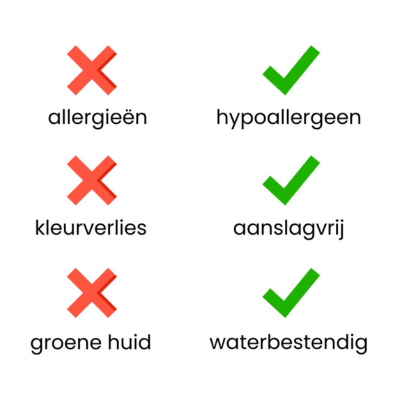 - Odporna na wodę, pot i ciepło. (Brak odbarwień, brak osadów).